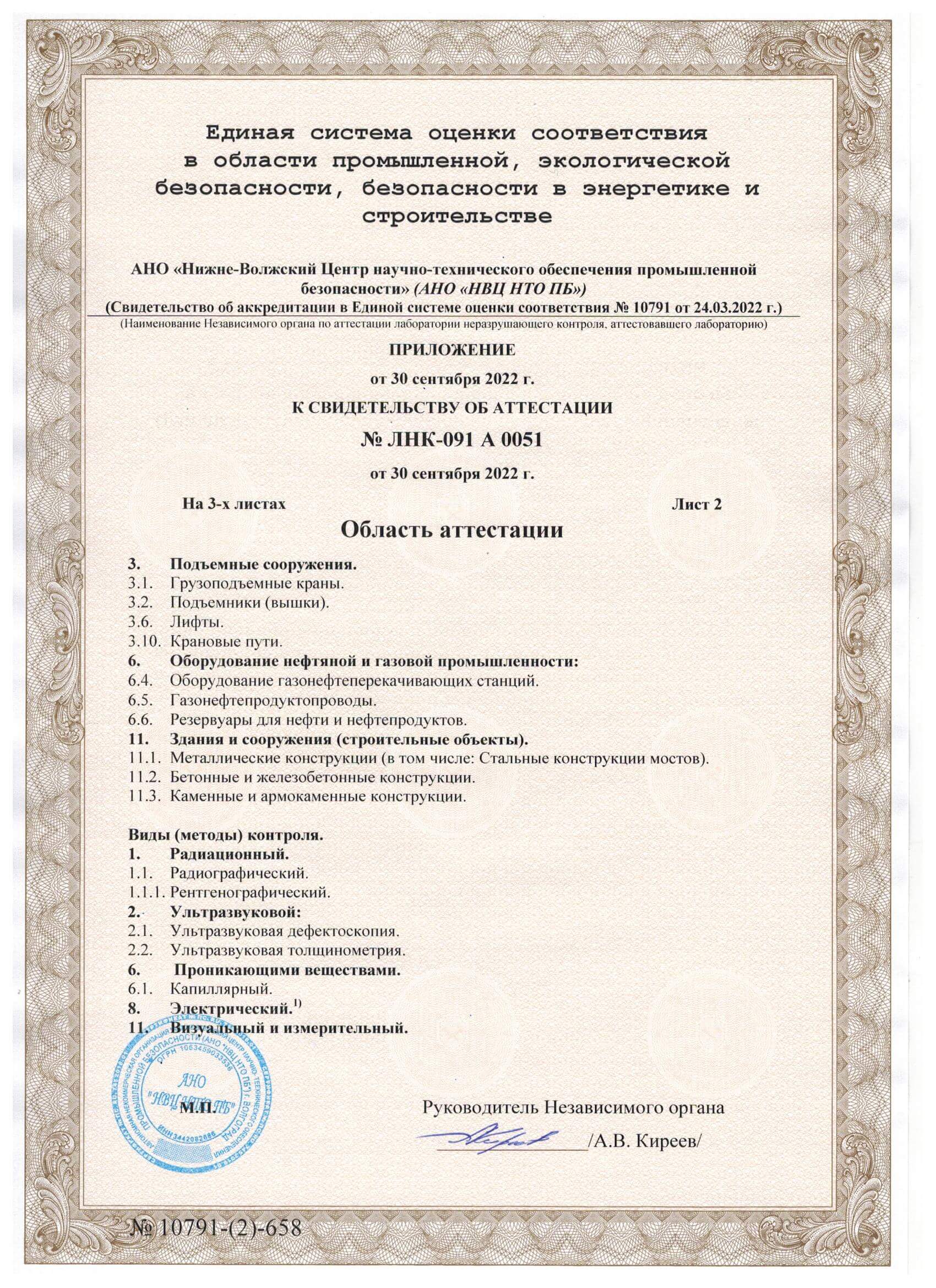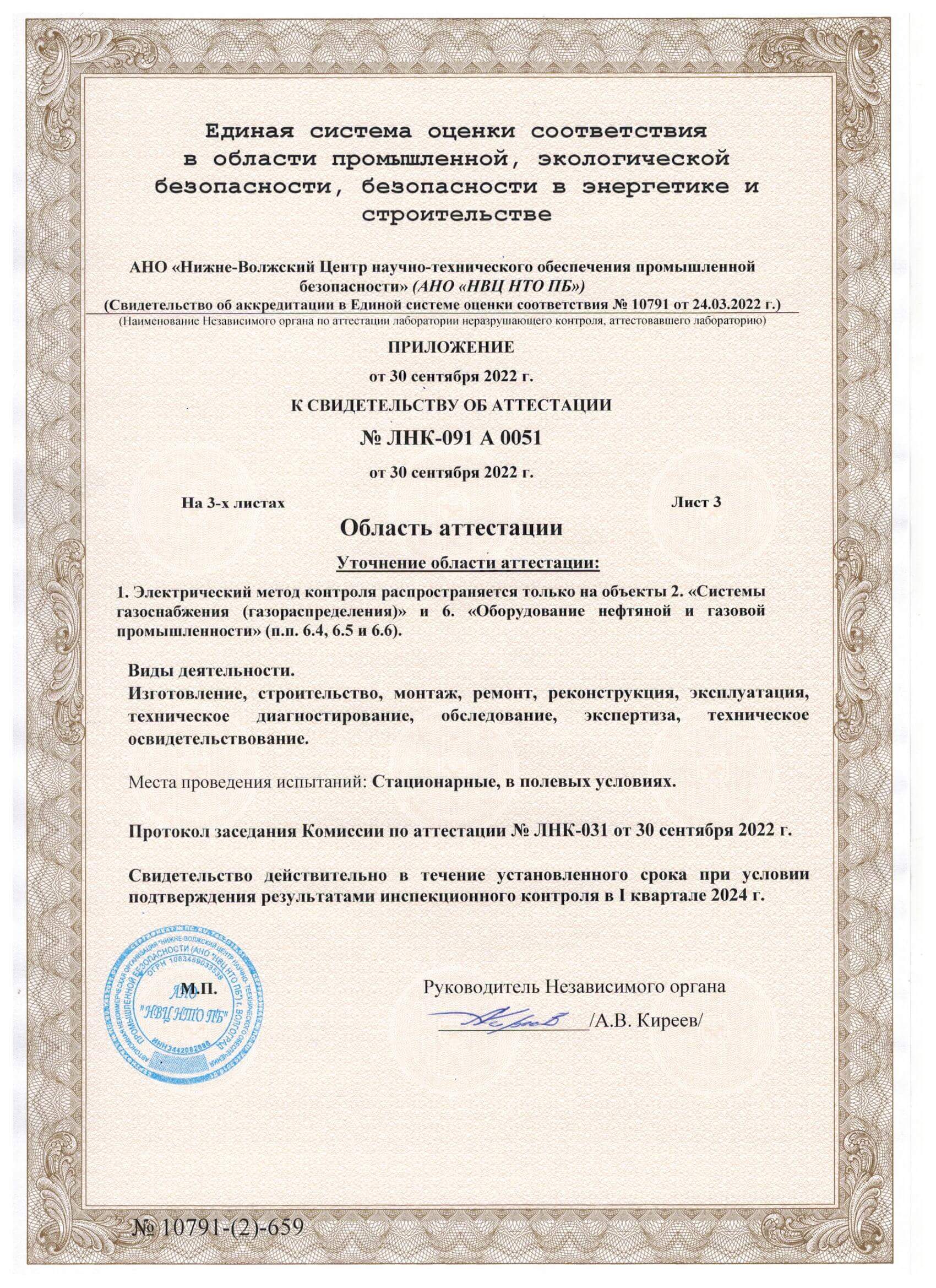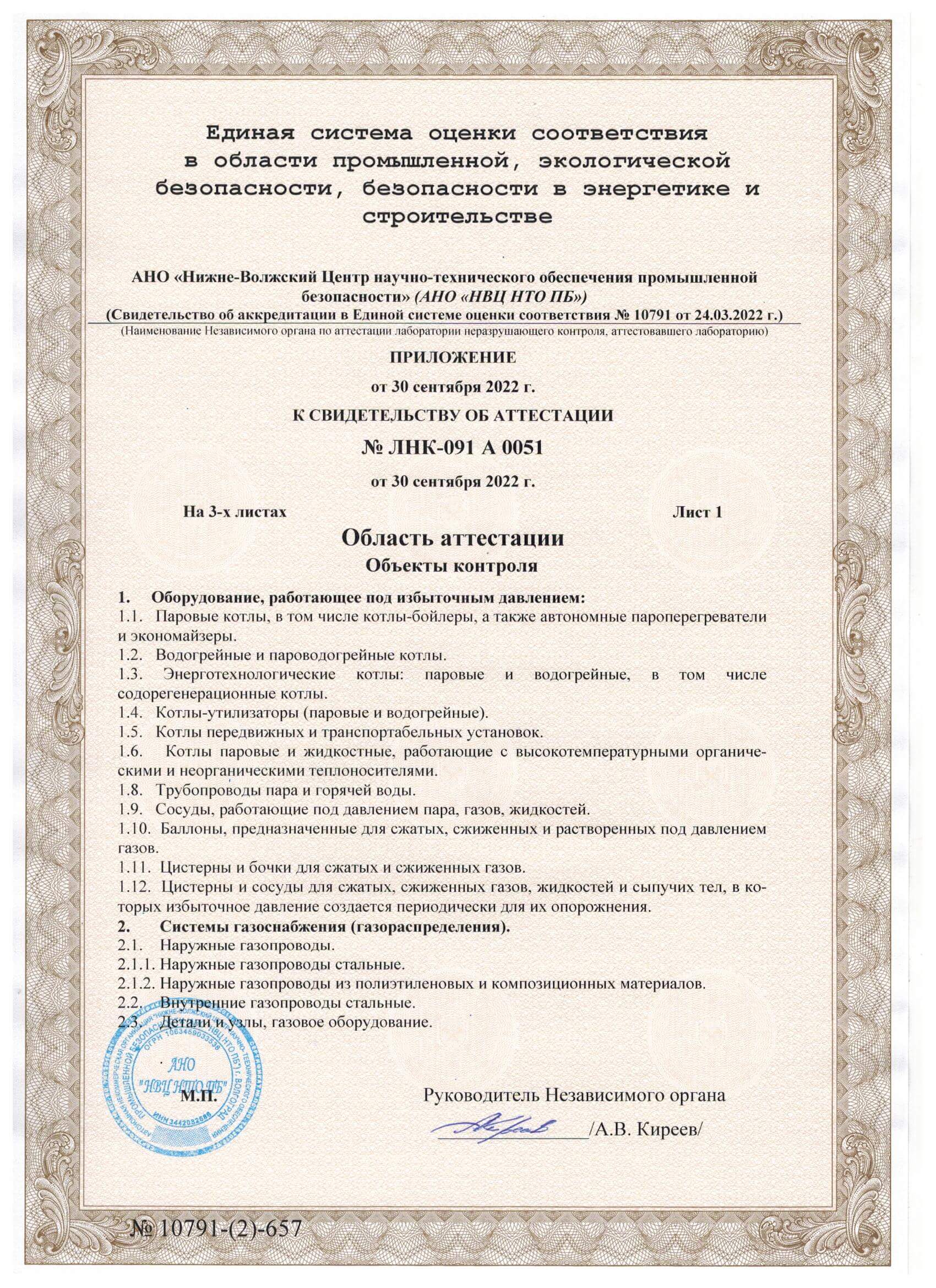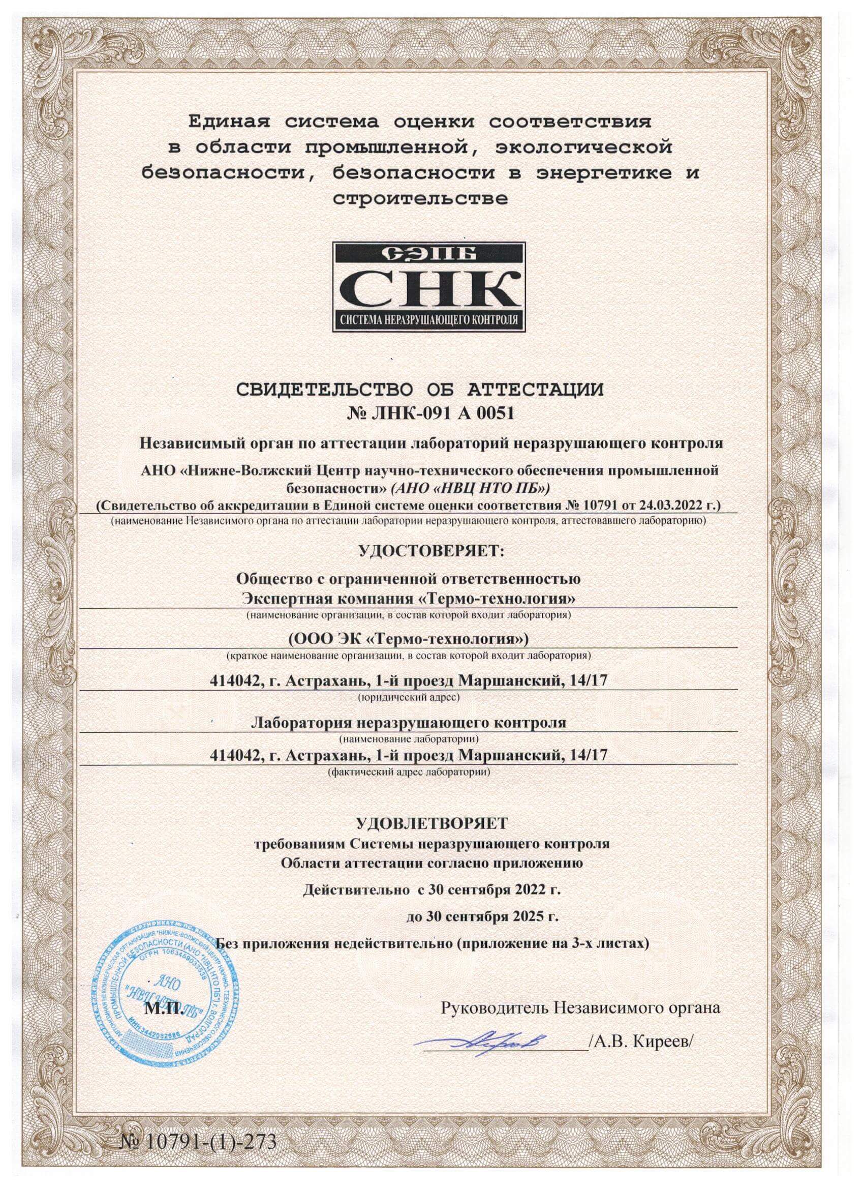 Свидетельство об аттестации № ЛНК-091 А 0051